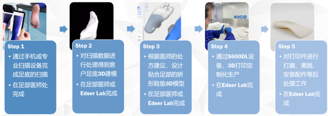 西班牙公司Edser擁有近30年的臨床矯形器、醫用鞋墊以及個性化鞋底生產經驗,客戶遍布全球。他們的產品涵蓋脊柱側彎、腦癱、馬蹄足等患者所需的矯形器,以及運動員護具、面罩、日常鞋墊、高跟鞋鞋墊、糖尿病足鞋墊等多種類型。為了滿足快速定制的市場需求,Edser選擇攜手TPM3D,通過SLS 3D打印將傳統生產全面升級為數字化流程,實現高精度、高效率、低成本的個性化制造。